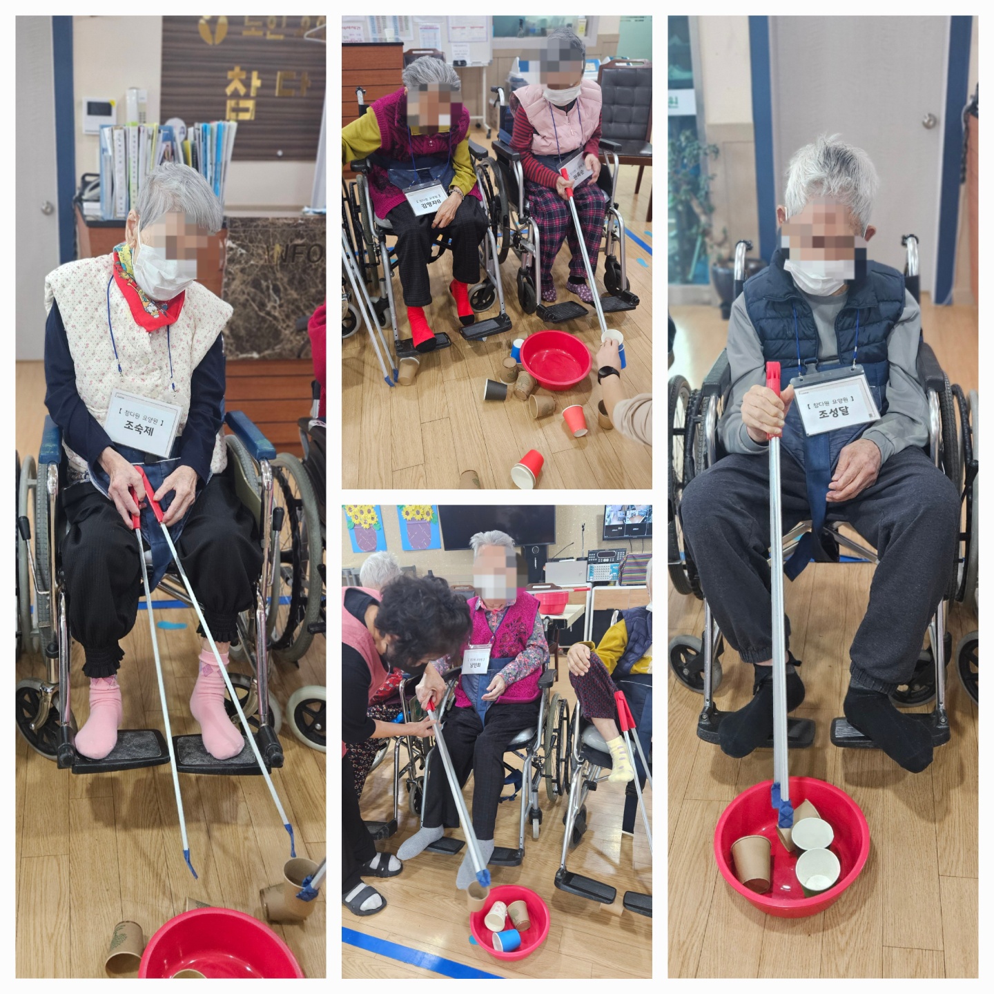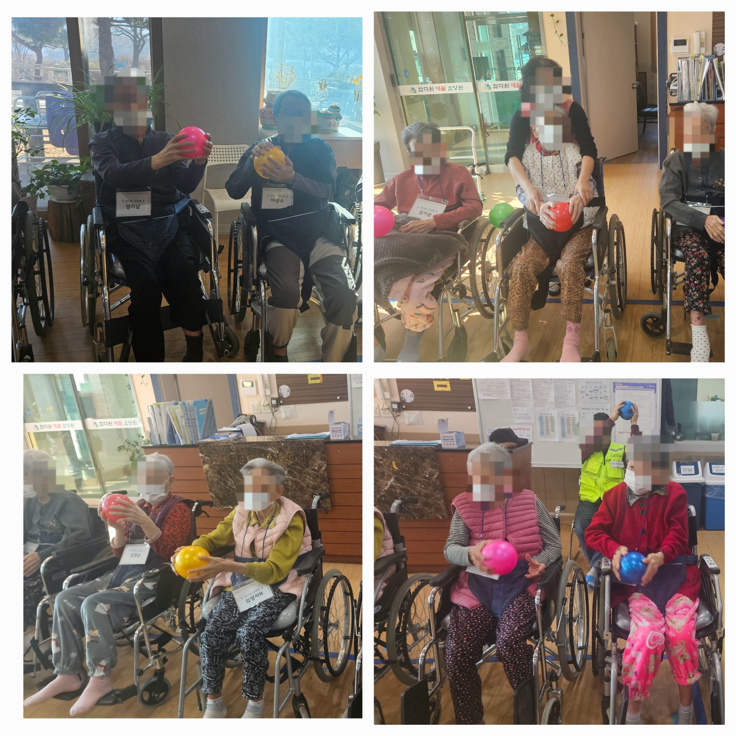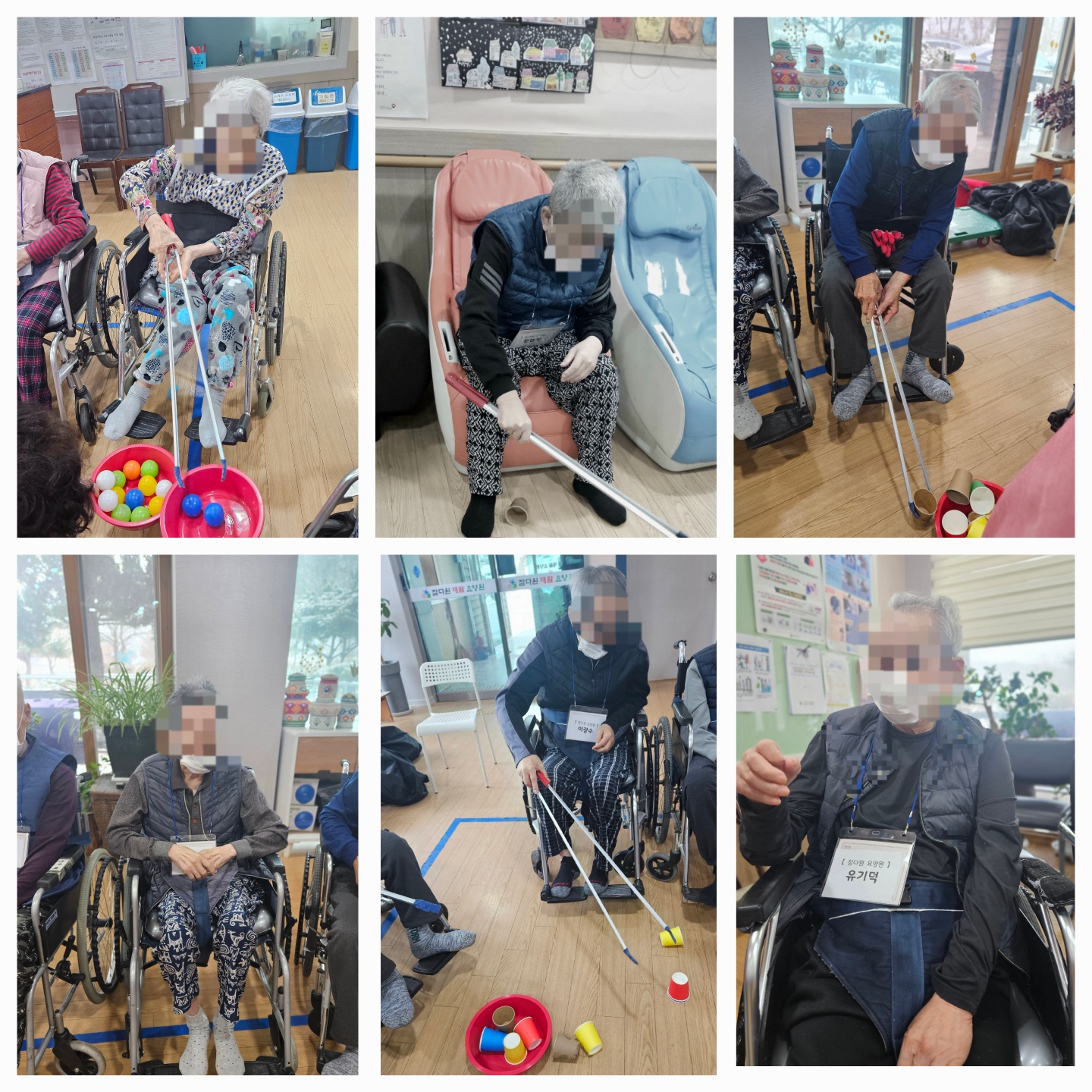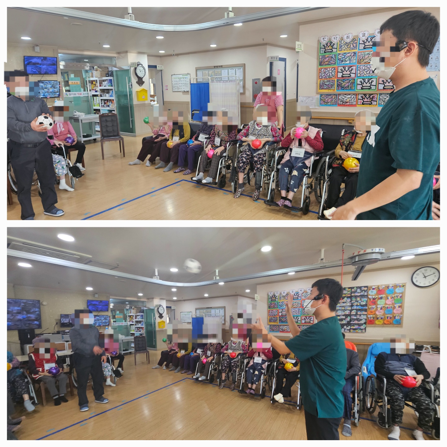 공을 이용한 핸드볼과 대형집게를 이용하여 소근육 유지 및 강화운동을 진행하였습니다.