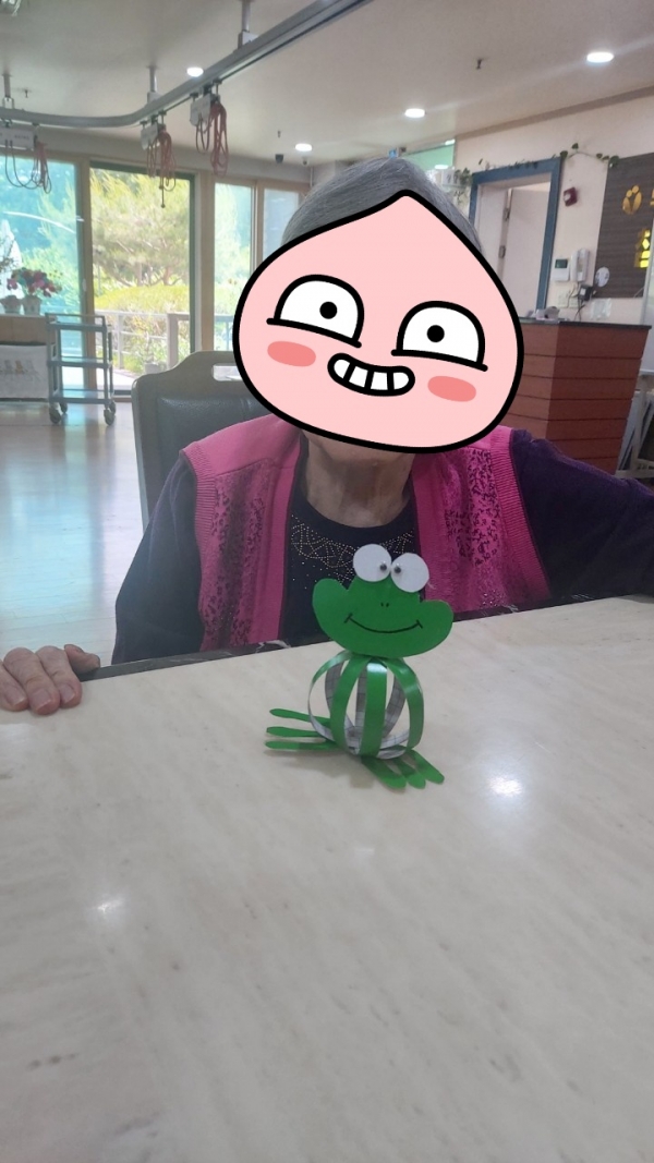 손조작이 가능하신 어르신들과 개구리 만들기